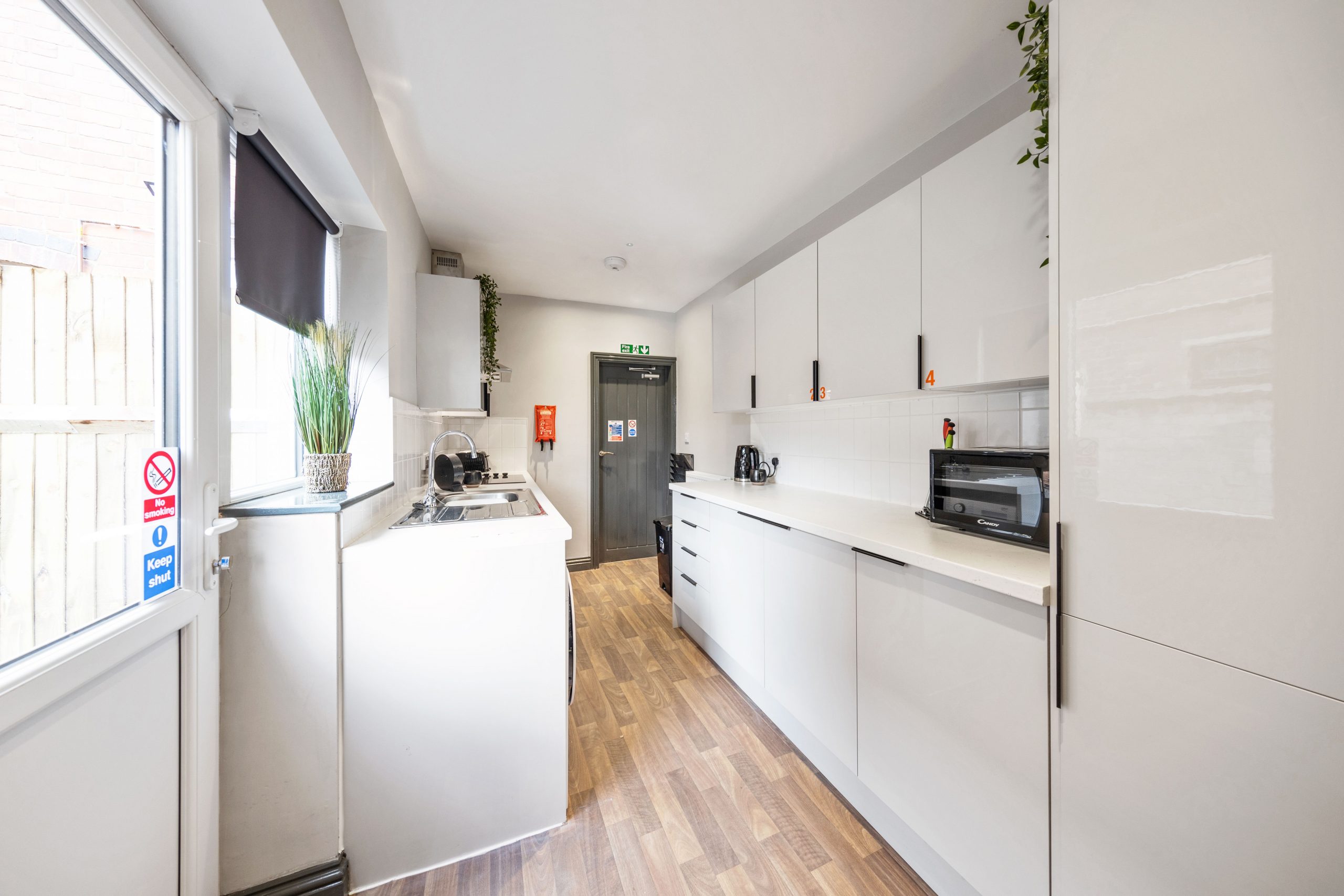 Located on a quiet back street just off Midland Road in Nuneaton, you'll find our latest completed project offering you the choice of five on trend contemporary rooms each with its own ensuite shower room or kitted out with new fixtures, fittings and furniture. as well as a newly installed kitchen and communal lounge with sofa, television and dining set.