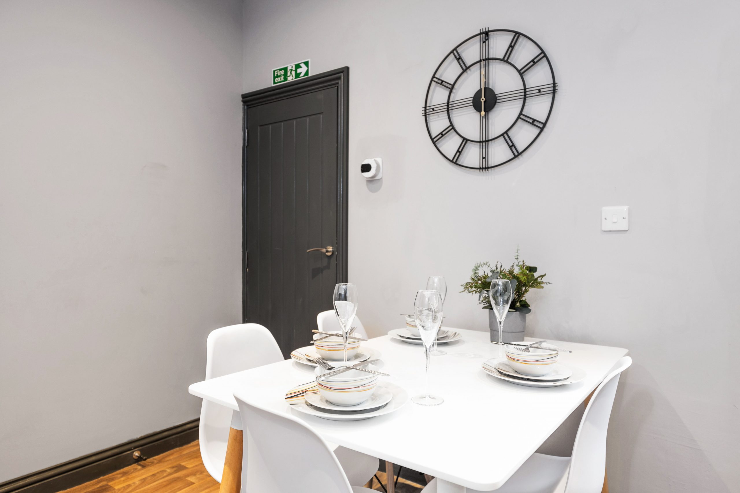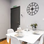- Communal area with dining table and chairs
